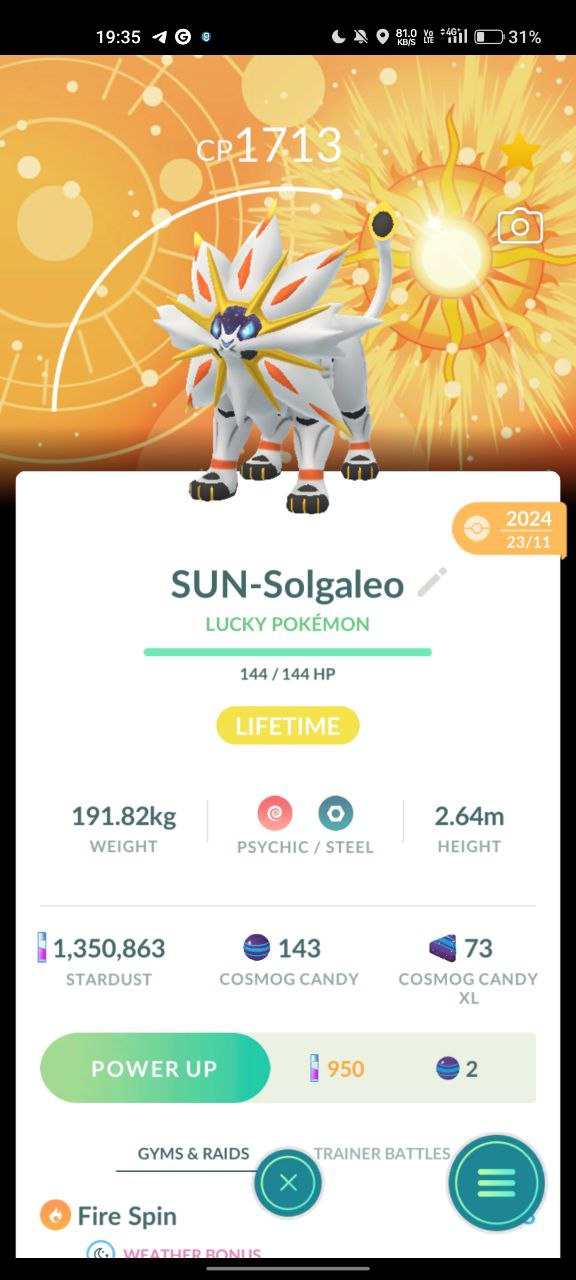 Level 46 Acc: 56 Shiny Legendary, 241 Leg, 71 Hundo, 25 Special BG, 11 Gigamax
