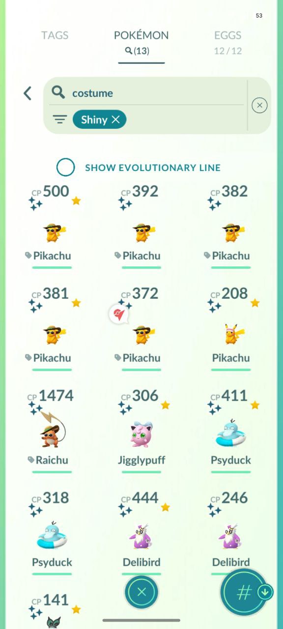 1 Shiny Hatched / 13 Shiny Costumes