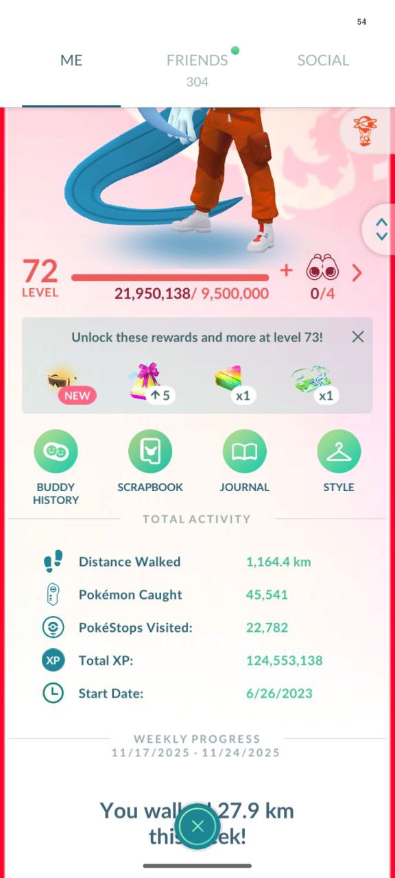 Level 72 Pokemon GO account