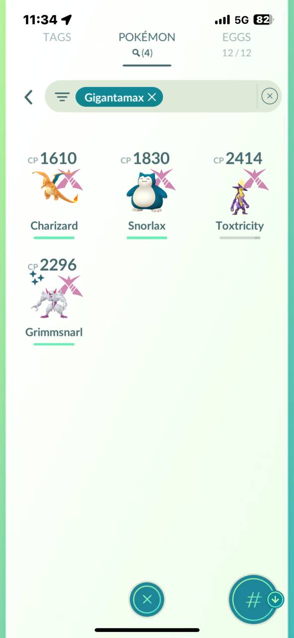 G-Max Pokémon: 4 (1 shiny G-Max)