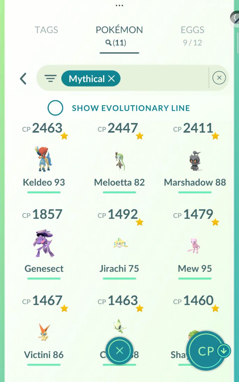 Mythical Collection (11 tags): Keldeo (2463), Meloetta (2447), Marshadow (2411), Genesect (1857), Jirachi (1492), Mew (1479), Victini (1467).