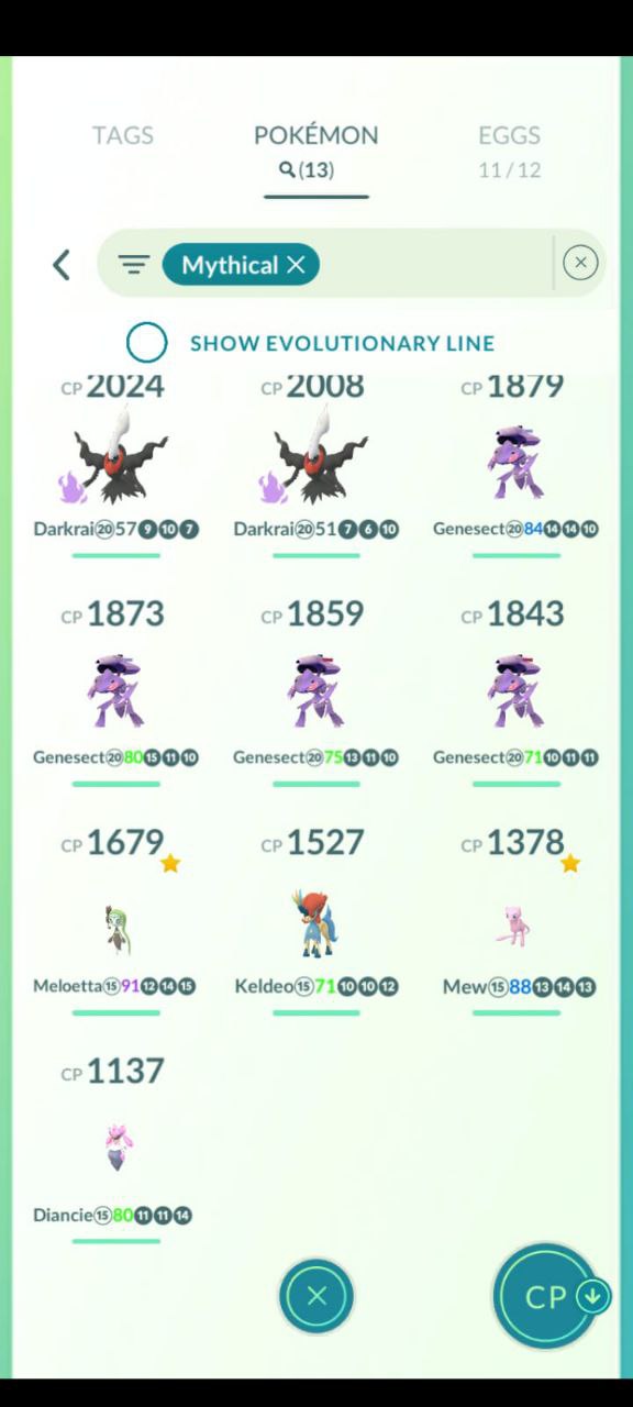 Mythical box includes Darkrai, Genesect variants, Meloetta, Keldeo, Mew and Diancie, covering many limited‑time raid and research species.