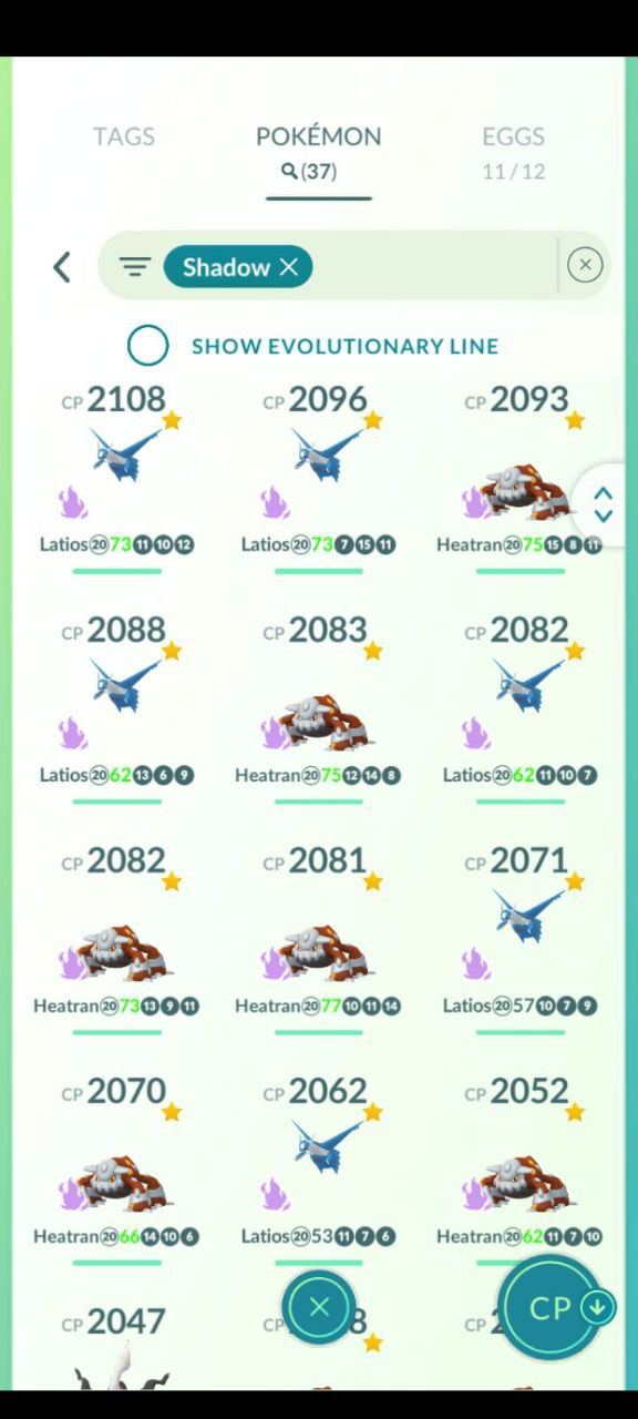 30+ shadow Pokémon including multiple Latios, Heatran and other strong species, ideal for high‑damage raid line‑ups.