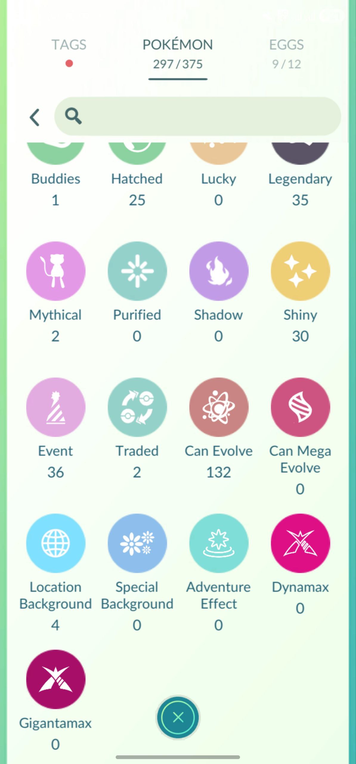 Other Highlights: 2 Hundos, 25 Hatched, 36 Costumes, 12 Special Pokémon, 4 Location Backgrounds (e.g., Zapdos).
