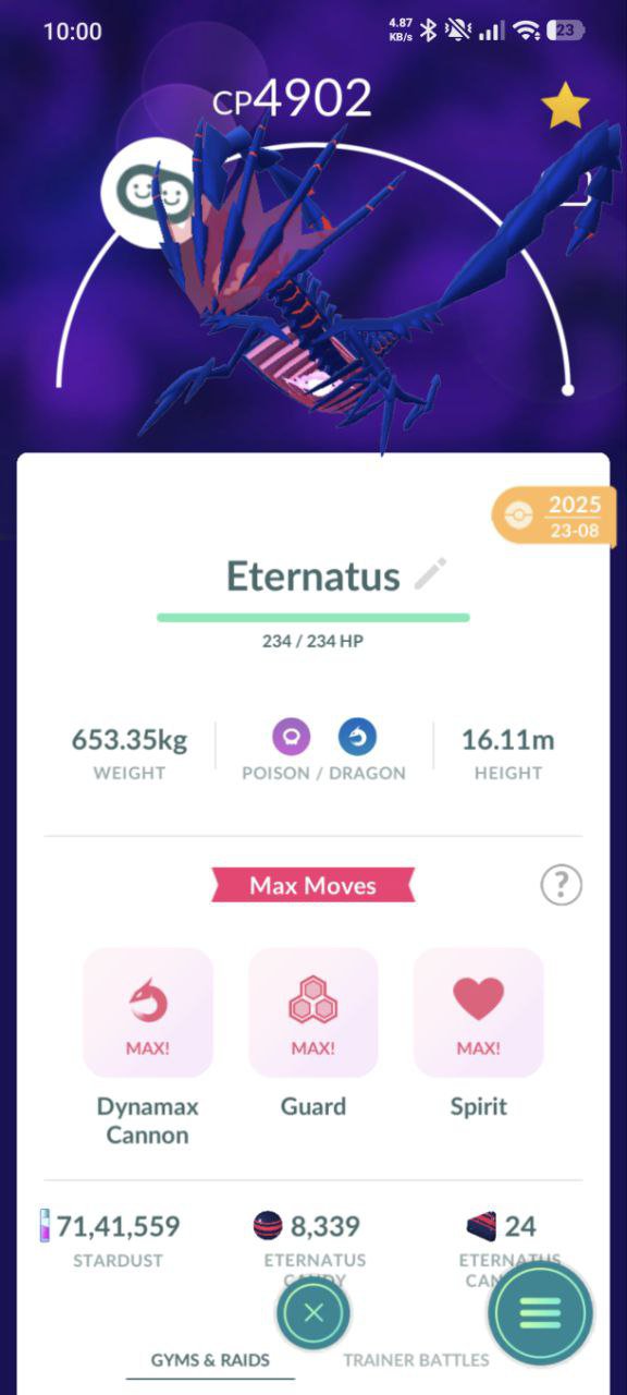 This account, which has been around since early 2021, is for the 2026 meta. It boasts a massive collection of over 648 Legendary Pokémon and a huge 6.9 million Stardust reserve. This account has a maxed-out Eternatus, Zacian, and Zamazenta (with all max moves), so you can take over right away, whether you play PvP seriously or just collect.
