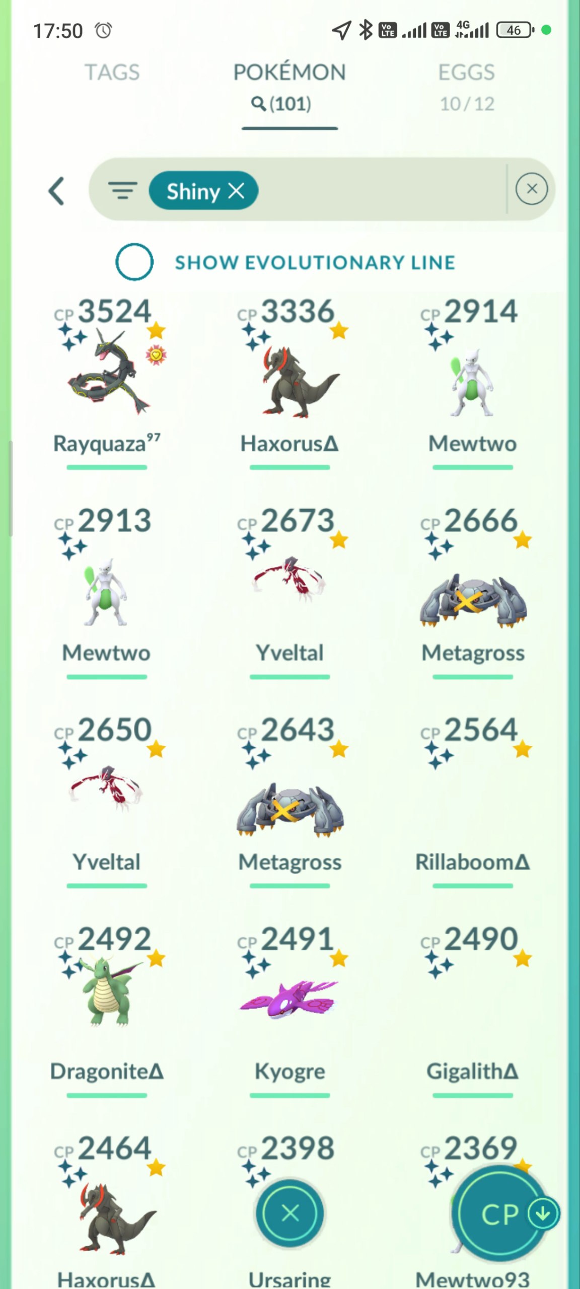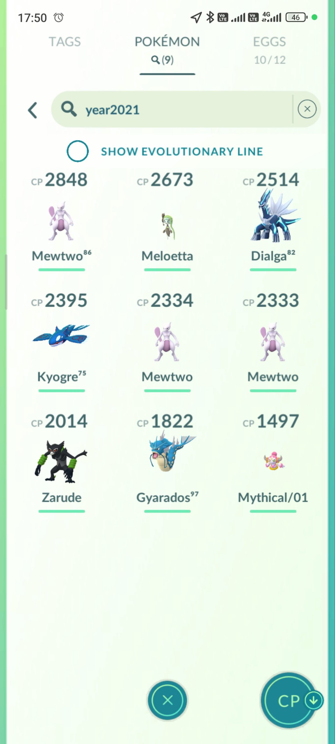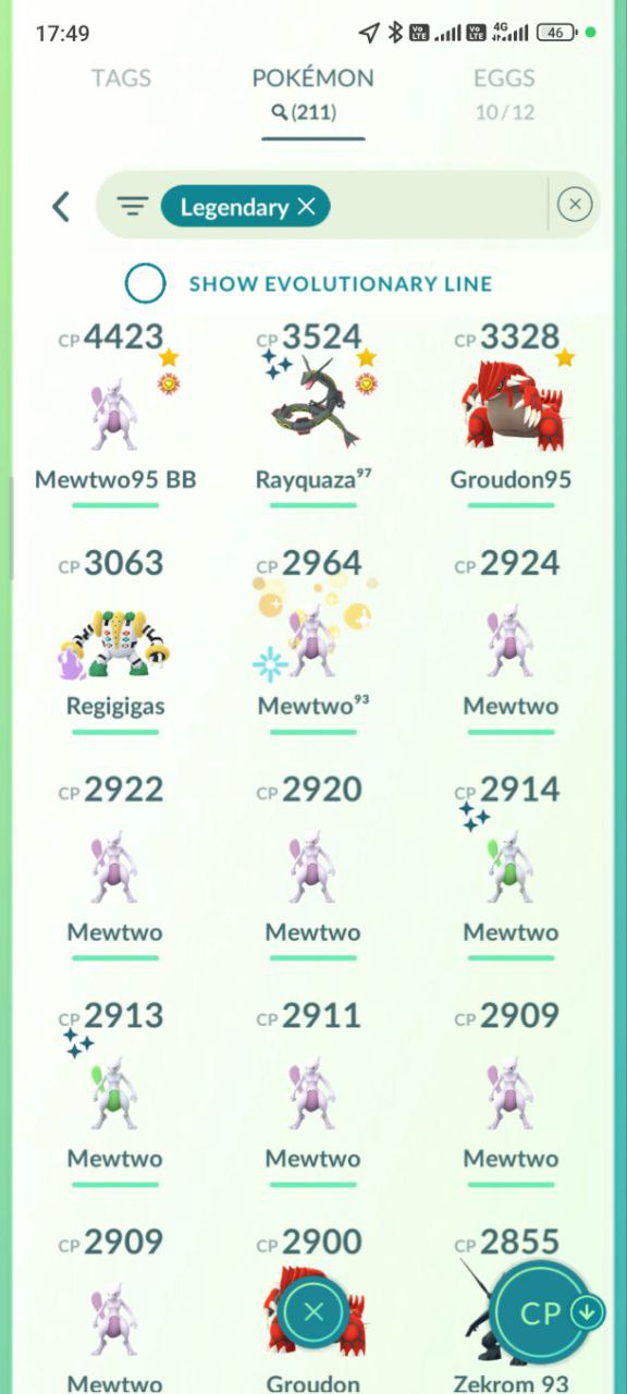Packed with over 900 Pokémon across categories, including high-CP tagged shinies (114+), legendaries (72+), mythicals (like Mewtwo variants, Meloetta, Hoopa), and Year 2021 evolutions. Standouts include multiple Mewtwo lines (up to CP 2855), Rayquaza (CP 3524), Kyogre (CP 2959), and special backgrounds (X versions for location/special). Shiny hunts shine with Legendary X Shinies (Rayquaza, Mewtwo, Kyogre) and Mythical Evolutions.
