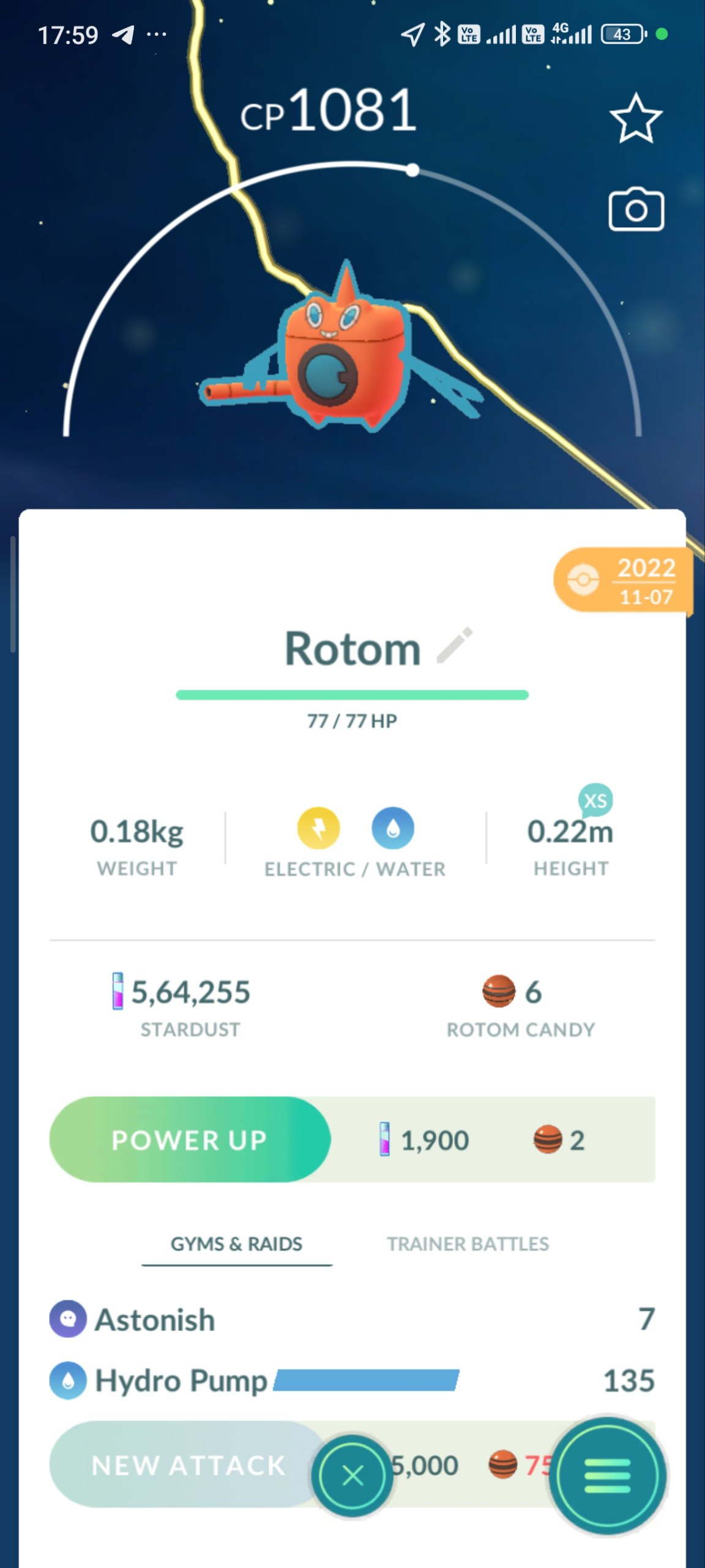Level 50 Pokémon GO Account – CP 1081 Rotom Powerhouse & Armored Shiny Legends
