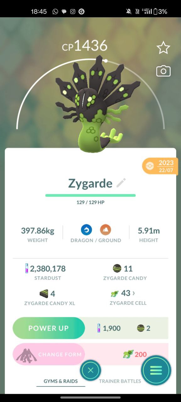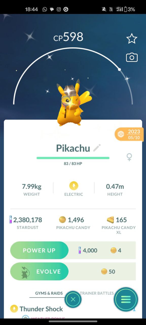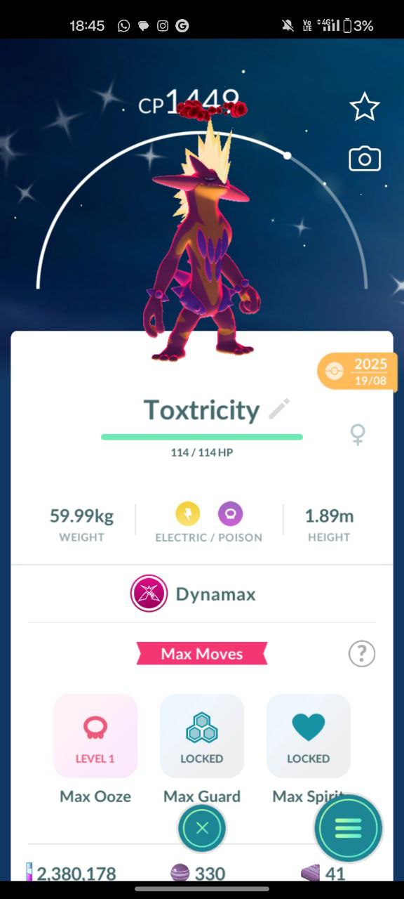 Lots of resources: 988 PokéCoins and a whopping 2,380,178 Stardust.