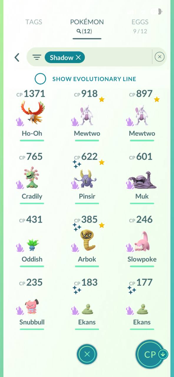 Shadow Pokémon: 12 (including Ho-Oh and Mewtwo)