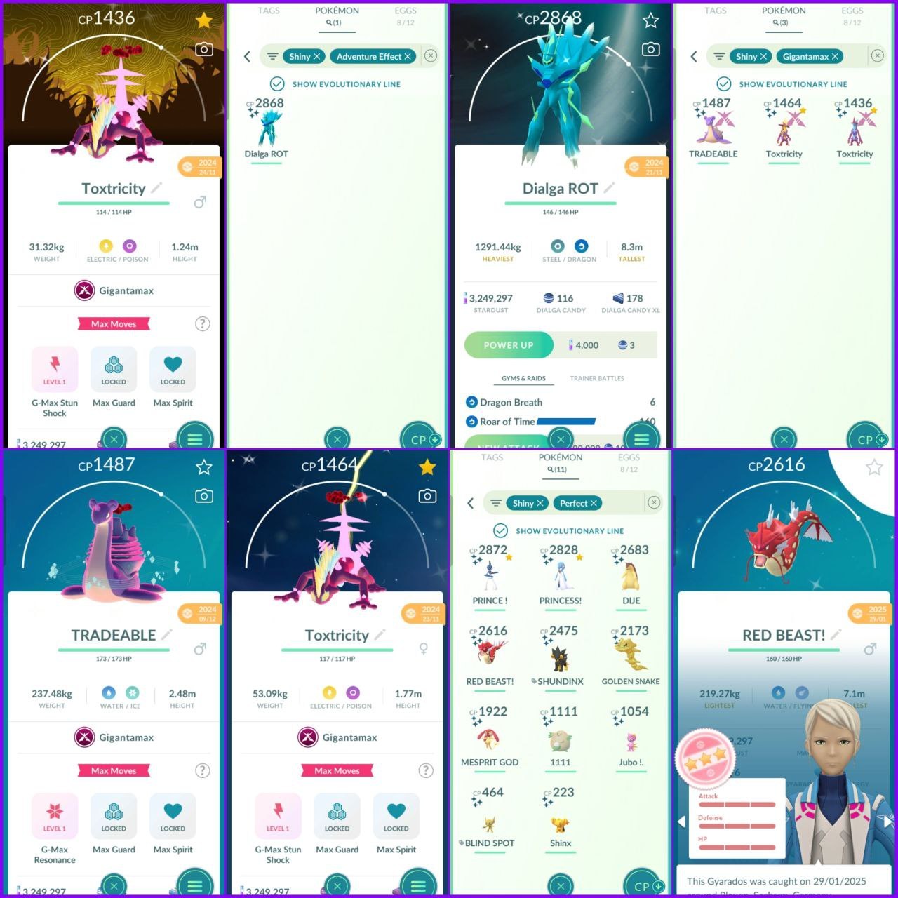 - Perfect (100% IV): 113 Pokémon (Including Shundo Gyarados “RED BEAST!” and Shundo Steelix)