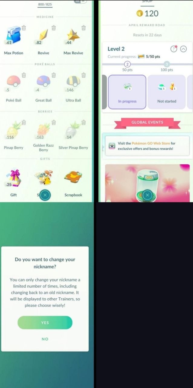 Pokémon GO item storage and name change availability 532a